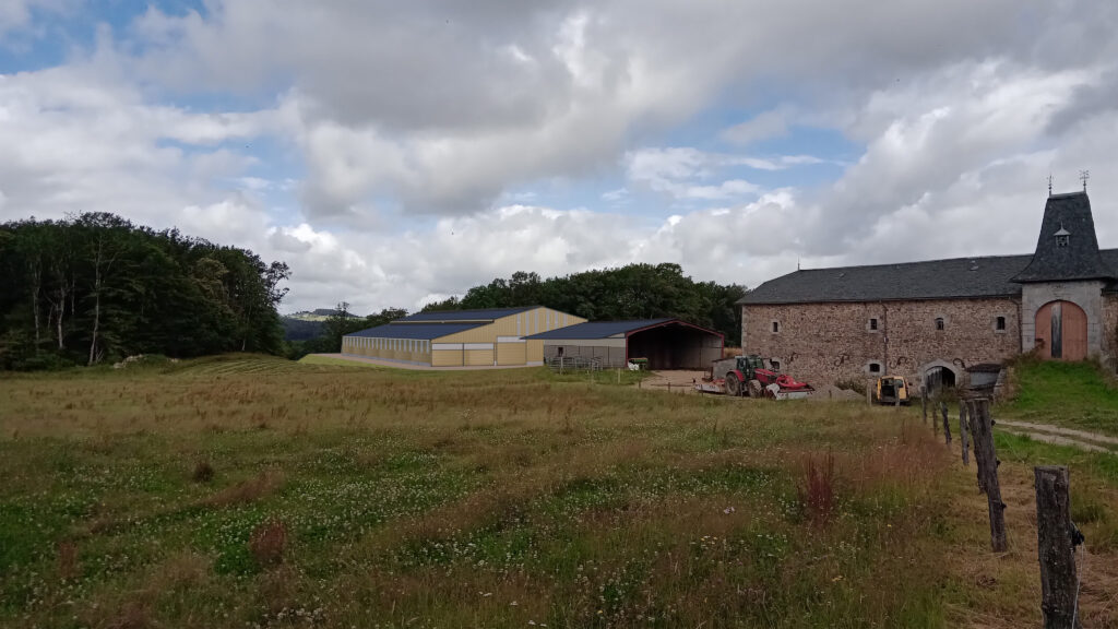 Construction d’une stabulation pour vaches allaitantes (logées en aire paillée + raclage fumier) + fumière couverte accolée.